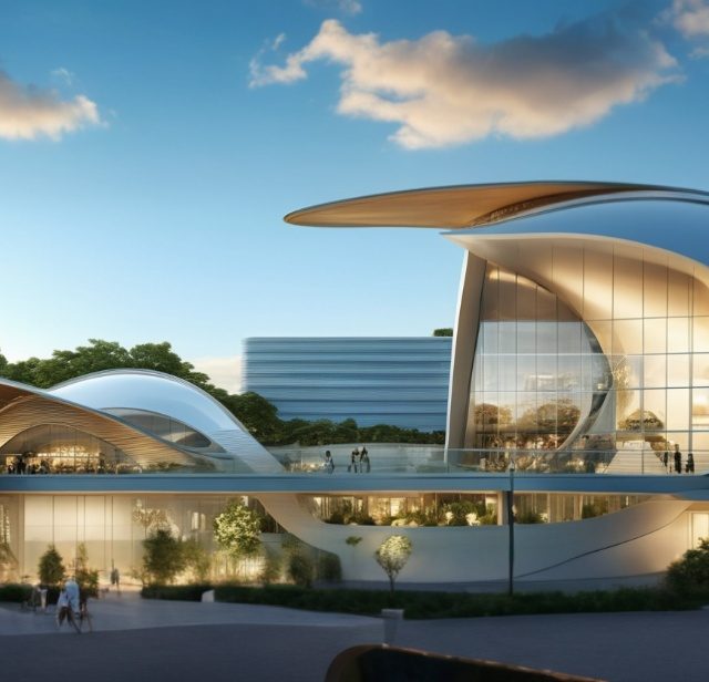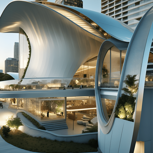 Built with a mix of glass, metal, and natural materials, the center’s architecture reflects both modernity and its lush tropical environment. The surrounding area features greenery, outdoor seating, and soft ambient lighting, creating a vibrant yet welcoming atmosphere.